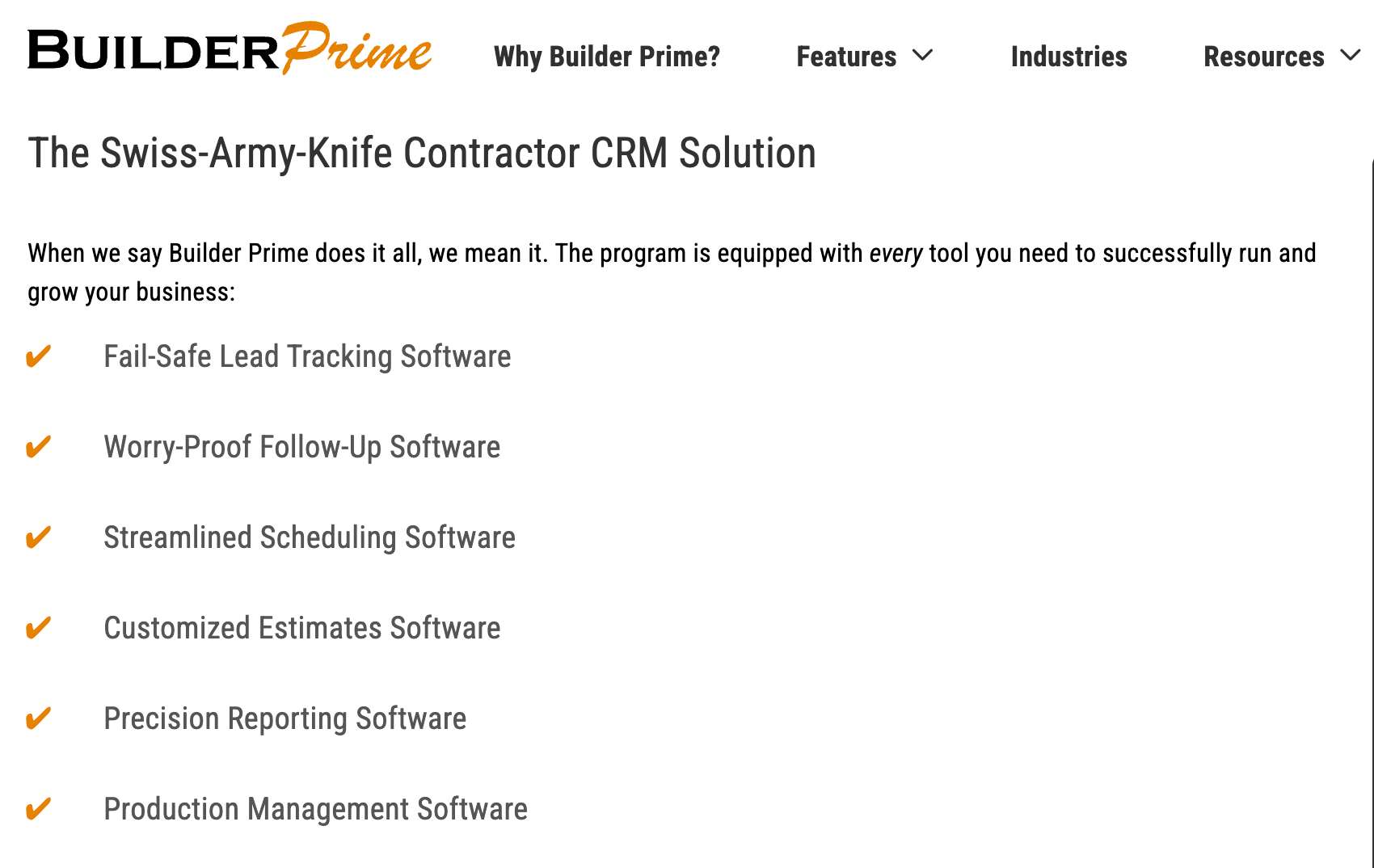 There's CRM software and then there’s Builder Prime: the does-it-all, contractor-specific CRM and estimation and production management software. With lead tracking, follow-ups, scheduling, customised estimates, precision reporting, and production management, Builder Prime handles jobs from start to finish with ease.