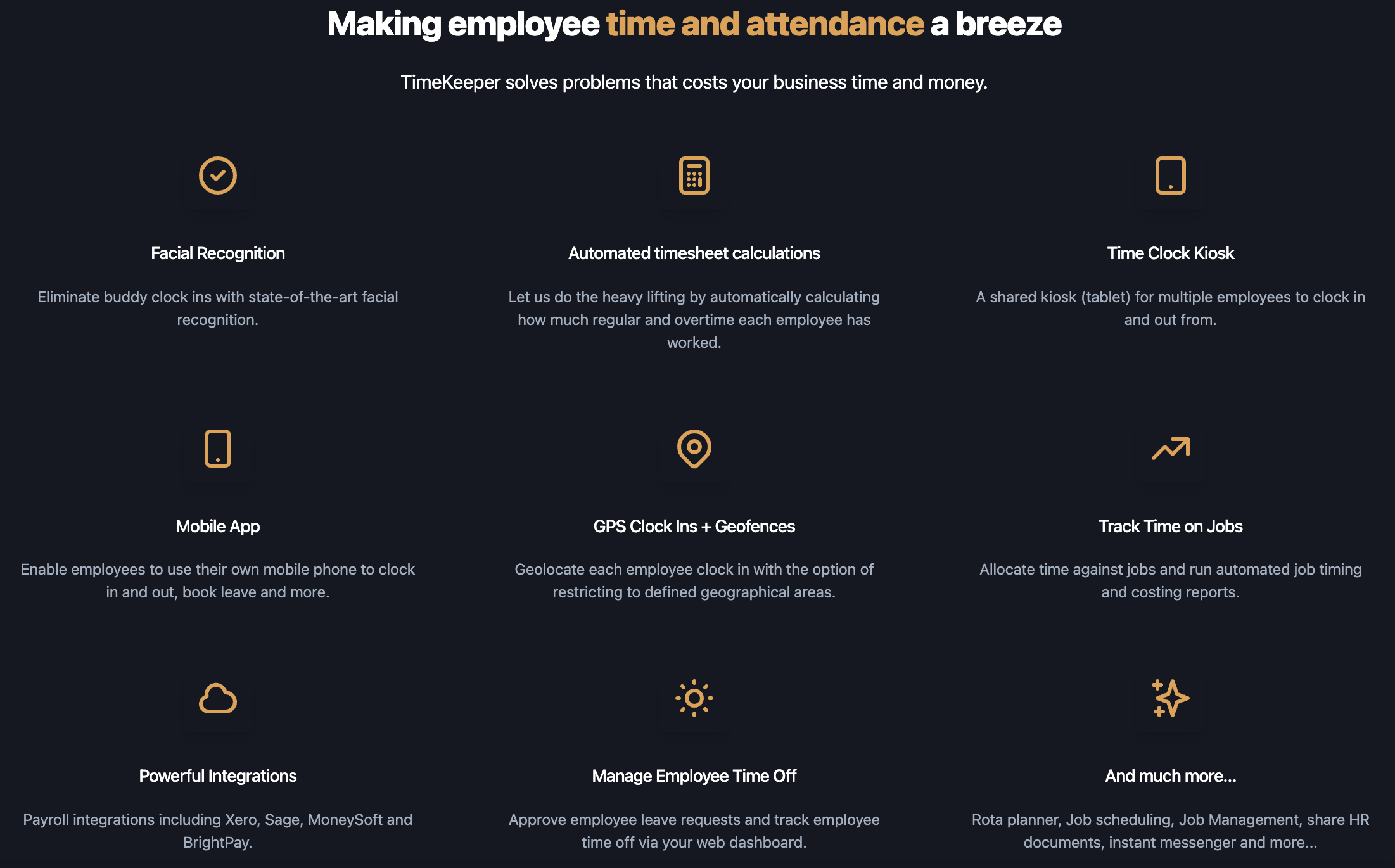 Employee Time and Attendance can be difficult to keep track of, with contractors out on different sites and builds through out the day, there's a lot of manual work left collating all those timesheets. That's where TimeKeeper can help. Efficiently and securely track employees time at different job sites, eliminate buddy clock-ins with facial recognition, and restrict the area they can clock-in from with GPS and Geofences. Automatically calculate timesheets and complex overtime rates whilst managing Jobs, leave and absence all in one place. Optional employee messenger function, partnered with the mobile app, ensures your team are always in the loop.